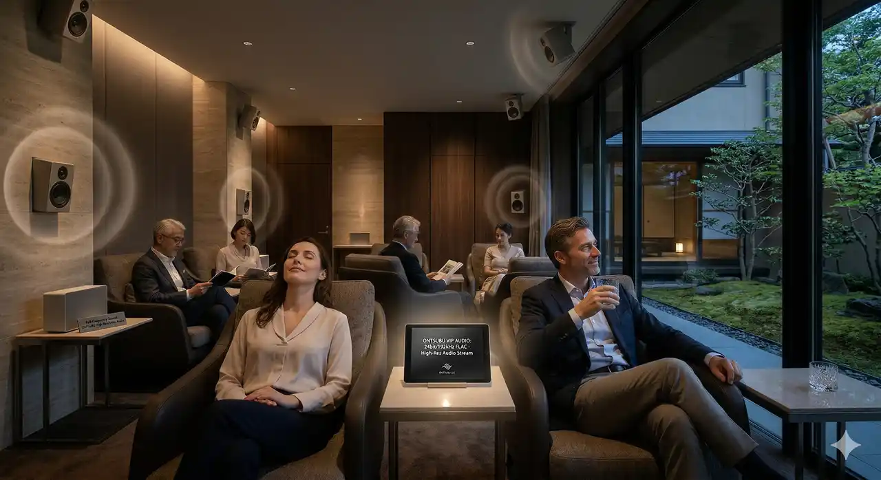 一般的な圧縮音源では、この微細な振動成分の多くが失われてしまいます。ONTSUBU LLCでは、その効果を最大限に届けるため、全音源を非圧縮音源*で提供。さらに法人導入向けには、空間全体に音響効果を行き渡らせる高精細音源*をご用意しており、スパ・ホテル・VIPラウンジなど広い空間でも体験の質を損なわずご活用いただけます。 ※再生環境(スピーカー・ヘッドフォンの性能)によって再現性に差があります。 |