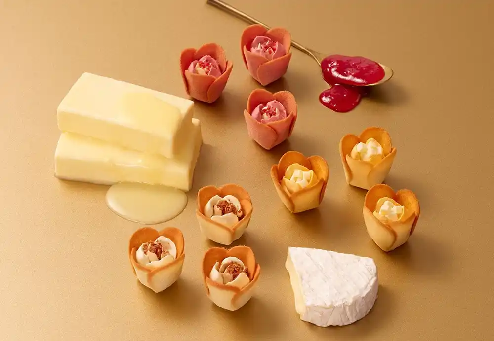バターとチーズの甘い香りに溢れた美味しい花屋へようこそ。香ばしいチューリップの花びらの中にとろけるローズが咲いた世界でここだけの花を贈ります。みんなを笑顔にする花のようなスイーツは、自分へのとっておきのご褒美に、贈り物にぴったりの一品。プレミアムな東京みやげとしても注目です。 |