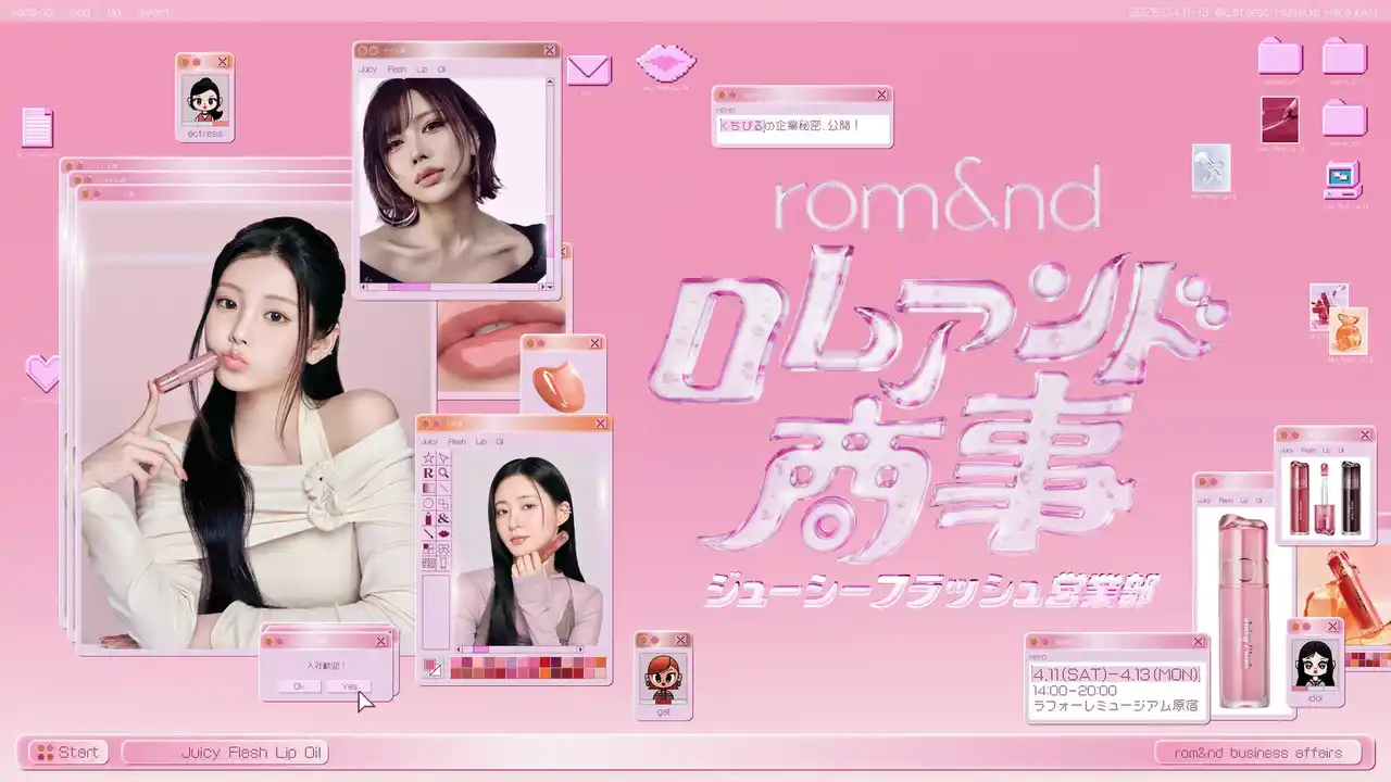 この度、新商品の発売を記念して、4月11日(土)~4月13日(月)の3日間、ポップアップイベント【「くちびるの企業秘密、大公開。」ロムアンド商事 ~ジューシーフラッシュ営業部~】を開催いたします。イベントでは、「世界中のくちびるを輝かせる。」をミッションに掲げる仮想企業 |