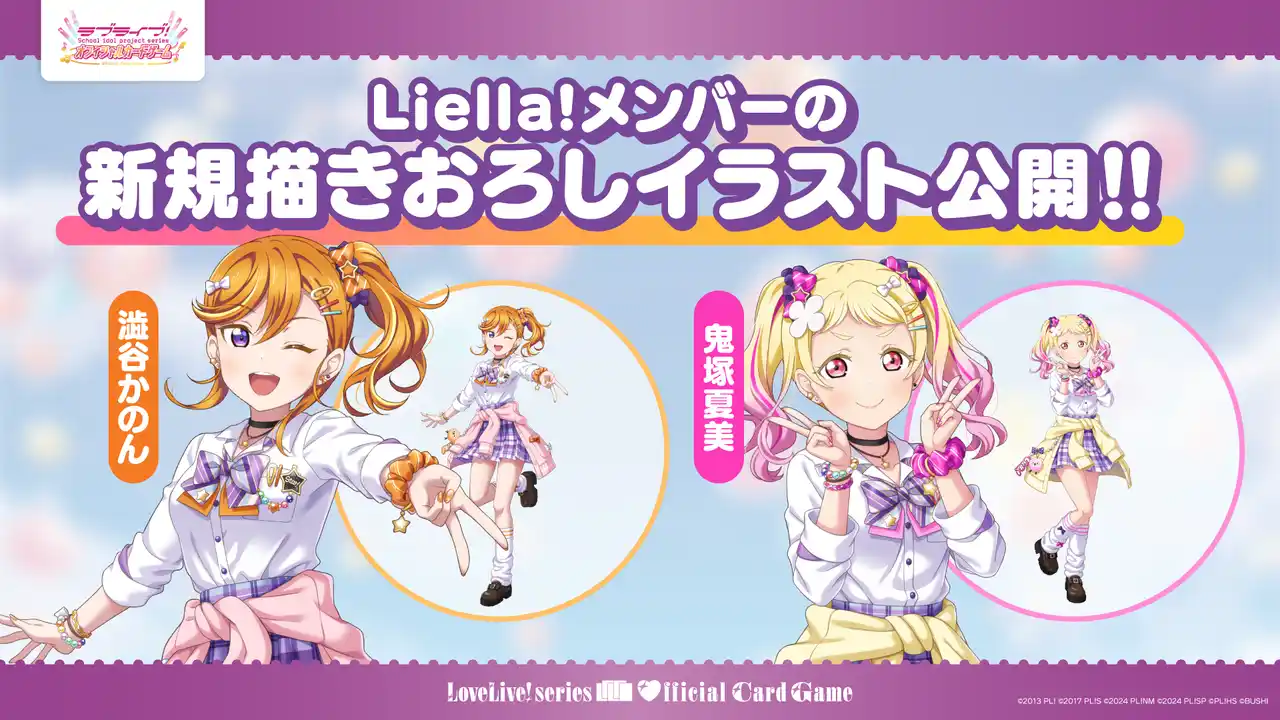 6月27日(土)に発売となる「プレミアムブースター ラブライブ!スーパースター!! DUO」より、鬼塚夏美の新規描きおろしイラストを初公開しました。澁谷かのん・鬼塚夏美以外のLiella!メンバーも同様の制服トレンドガール風の衣装イラストにて収録予定ですので、公開をお楽しみに! |