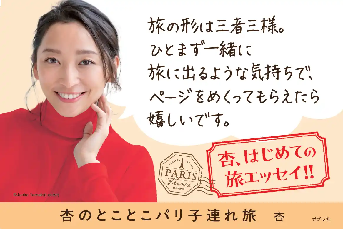 株式会社ポプラ社より2026年3月18日に刊行された『杏のとことこパリ子連れ旅』。本作は、杏さんがパリ暮らしのきっかけとなった3回の旅について初めてつづったエッセイです。大好評につき、発売後たちまち重版が決定いたしました。 |