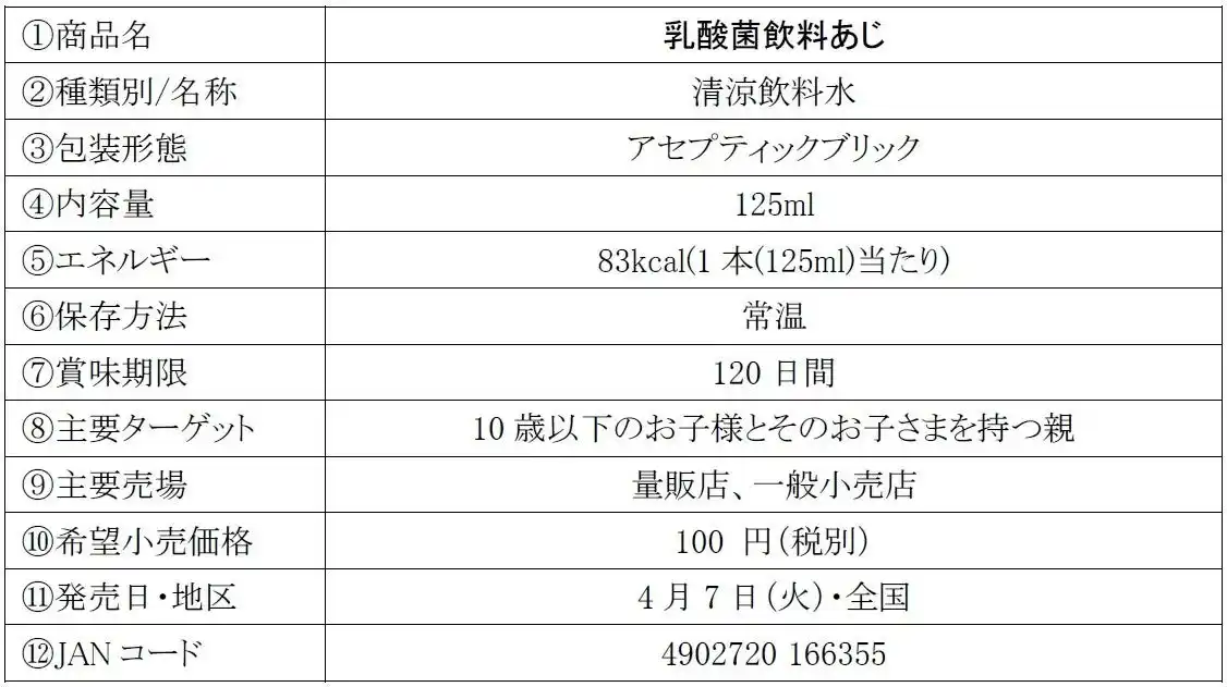 森永乳業は、「乳酸菌飲料あじ」を4月7 日(火)より全国にて期間限定発売いたします。 |