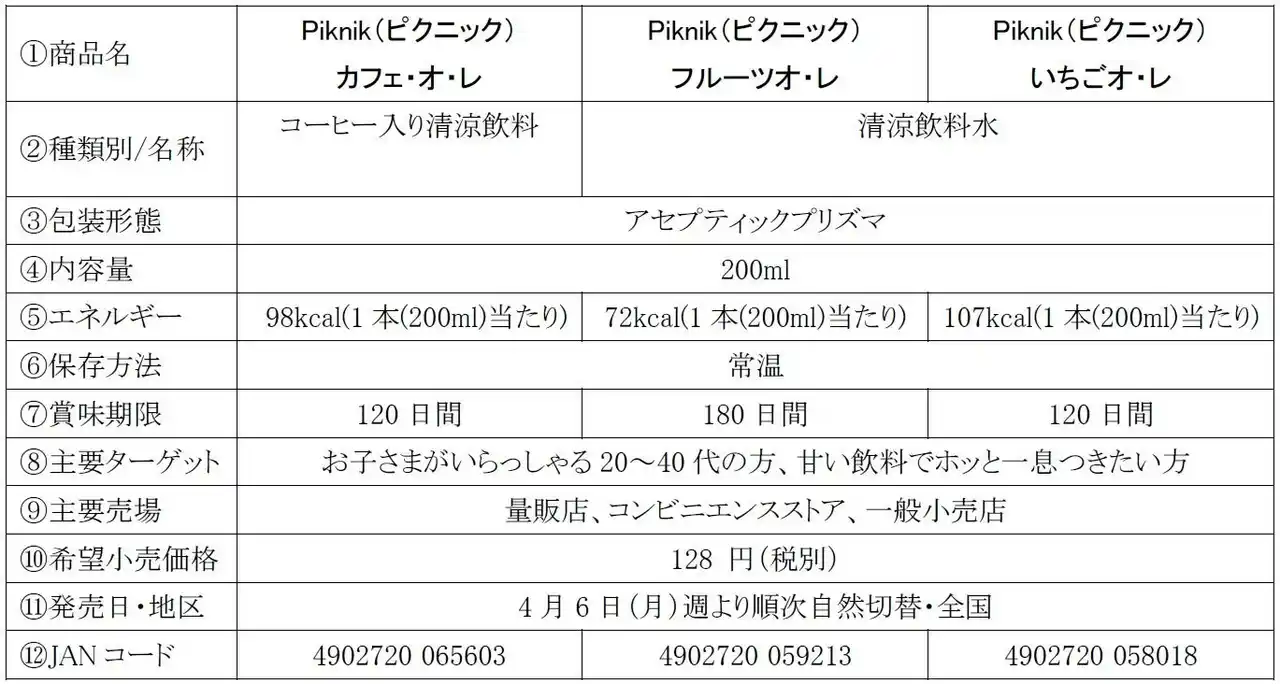 1981年に発売し、40周年以上お客さまにご愛顧いただいている「Piknik(ピクニック)」シリーズは、豊富なラインアップによりお好みに合わせて様々な味わいが楽しめ、ミルクのまろやかさでホッと一息つける飲料です。 |