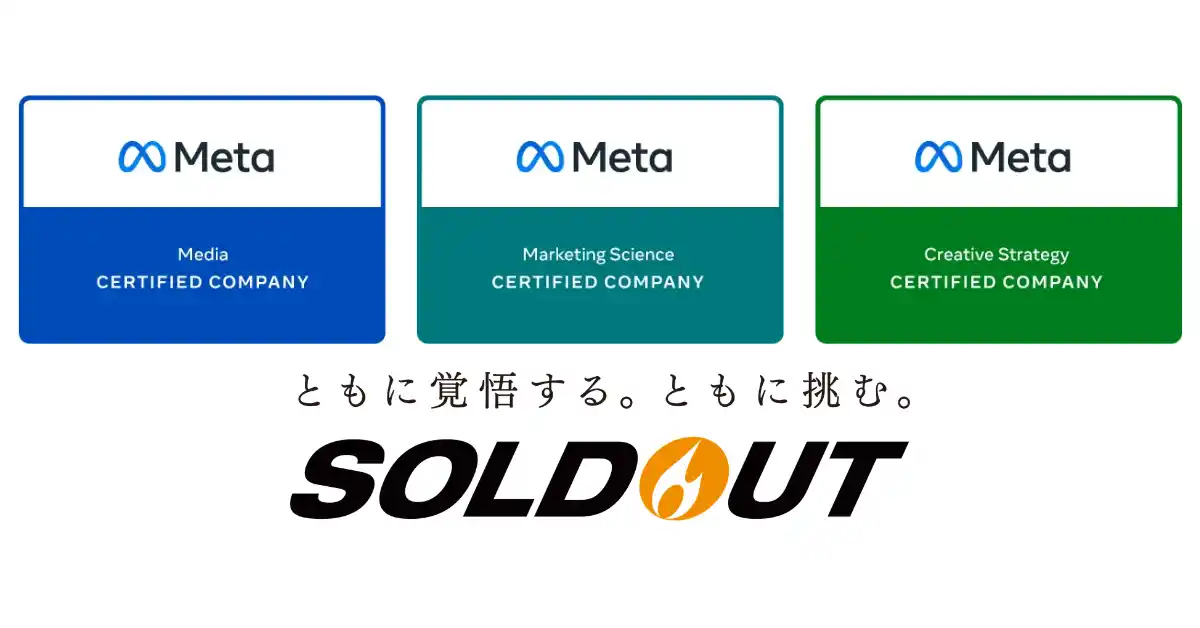 | 地方を含む全国の志ある中堅・中小企業の成長支援をデジタルマーケティング領域で展開するソウルドアウト株式会社(本社:東京都文京区 代表取締役社長CEO兼CCO:荒波 修、以下「ソウルドアウト」)は、Metaが提供する「認定企業プログラム」において、昨年に引き続き、「メディア認定」「マーケティングサイエンス認定」「クリエイティブ戦略認定」の3部門を継続取得したことをお知らせいたします。 | |||