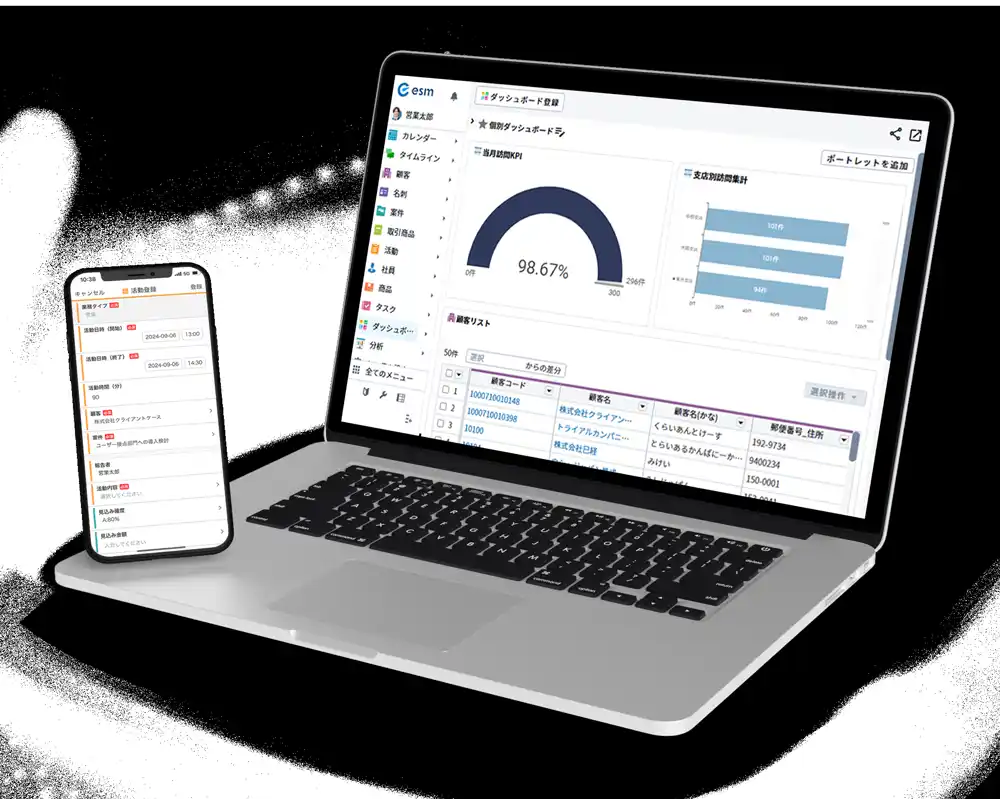 「esm(eセールスマネージャー)」は、業種、業界、規模を問わず、各企業に合った営業プロセスが設計可能です。営業プロセスの見える化、測る化、改善を通じた「プロセスマネジメント」の実現によって、業務効率化と売上利益向上につながる仕組みを作ります。