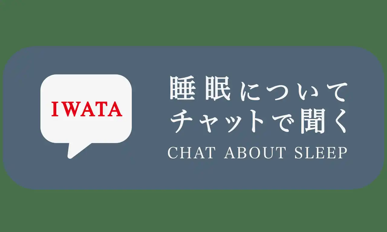 「IWATA 眠りのコンシェルジュ」は、イワタが培ってきた睡眠・寝具の専門知識をベースに、お客様一人ひとりの状況に寄り添って回答するAIチャット型の眠り相談窓口です。 |
