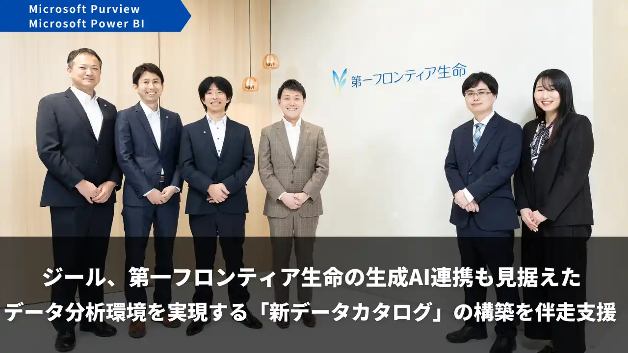 アバントグループで、デジタルトランスフォーメーション(以下「DX」)推進事業を展開する株式会社ジール(本社:東京都品川区、代表取締役社長:沼田 善之、以下「ジール」)は、第一フロンティア生命保険株式会社(本社:東京都港区、代表取締役社長:明石 衛、以下「第一フロンティア生命」)のデータ活用の民主化をさらに加速する、生成AI連携を見据えた自律的なデータ分析環境の実現に向け、Microsoft Purview と Microsoft Power BI を活用した新データカタログの構築に伴走支援しました。加えて、本導入事例を公開したことをお知らせします。