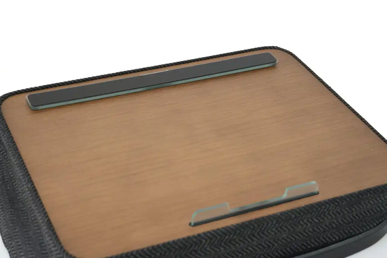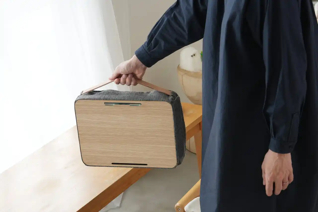 ●座れる場所ならどこでも使えるミニマルなデスク ソファやベッドなど、座れる場所があればどこでもご使用可能です。作業に適した高さ設計をしているため、リラックスした姿勢での作業環境をサポートします。天板には硬度の高いオークを採用し、PC作業に限らずメモを書留めたり、ペン作業にも対応します。 |