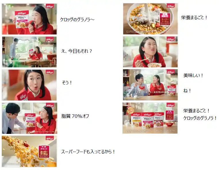 新ブランドアンバサダーにはタレントの横澤夏子さんを起用し、4月12日(日)より全国でTVCMを放映します。本CMでは、脂質70%オフ*¹でスーパーフードも配合した「素材まるごとグラノラ」の栄養価や手軽さといった魅力をお伝えします。横澤さんが演じるリアルな朝の日常シーンの中で、ご自身もすっかりお気に入りとなった本商品を自然体で楽しむ姿を通じて、彼女ならではの明るさと元気をお届けする内容となっています。 |