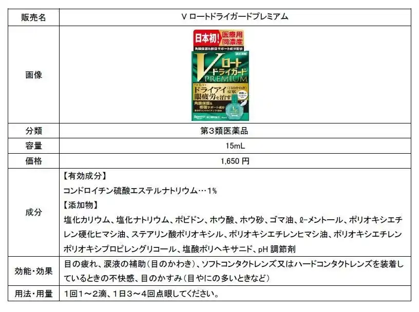 ロート製薬株式会社(本社:大阪市、社長:瀬木英俊)は、一般用目薬においてコンドロイチン(高分子)※11%配合を実現したドライアイ(目のかわき)症状向け目薬「Vロートドライガードプレミアム」を2026年3月26日に発売いたします。