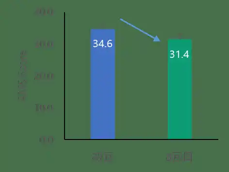 その結果、初回の平均AMSスコアが34.6から31.4へと低下し、有意な改善が認められました。AMSスコアは27点以下が「症状なし~軽度」、27~36点が「中等度」に分類されます。中等度の範囲内ではあるものの、軽度への移行に近づく数値の変化が確認されました。 |