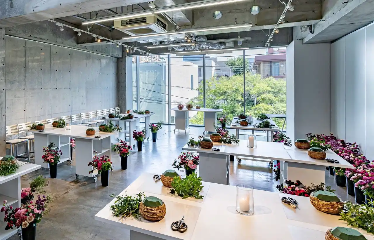 本フラワースクールは、南青山のニコライ バーグマン フラワーズ & デザイン フラッグシップストアの2Fで、フラワーアレンジメントの基本を学べるのはもちろん、ニコライ・バーグマンならではの花の組み合わせ方やカラーグラデーション、サプライズ感のあるアレンジメントテクニックを身に付けられます。ニコライ・バーグマン本人の他、彼のもとで長年学びデザインを受け継いだシニアトレーナーたちが指導を担当します。 |