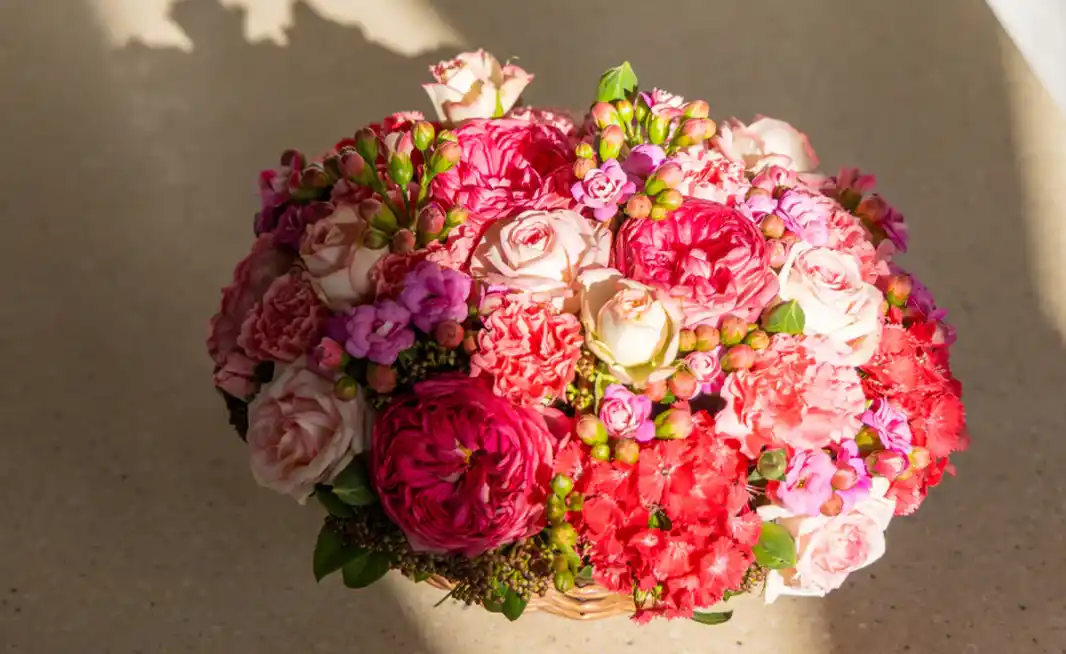 初心者向けの基本レッスン。新たなスタートの季節にあわせて、春のやわらかな空気を感じるピンクトーンのアレンジメントを制作します。器に入った吸水性スポンジに花を挿して仕上げるアレンジメントを通して、花材の扱い方や花の挿し方、配置の基本を学びます。花の顔の向きや高さ、色合わせ、全体のボリュームやバランスなどを意識しながら、アレンジメント制作に欠かせないポイントを、ひとつひとつ身につけることができます。 |