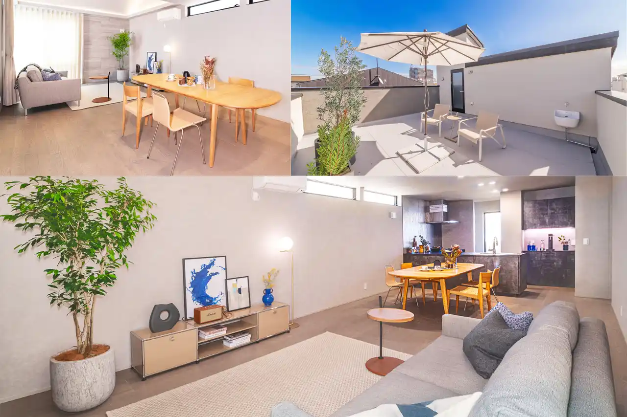 設計においては「都市と住空間の分離」をテーマとし、電動ガレージシャッターにより外部の視線や音といった都市のノイズを遮断。さらに、南側の眺望と採光を活かしたLDKにより、都心戸建でありながらタワーマンション上層階のような居住体験を実現しています。 |