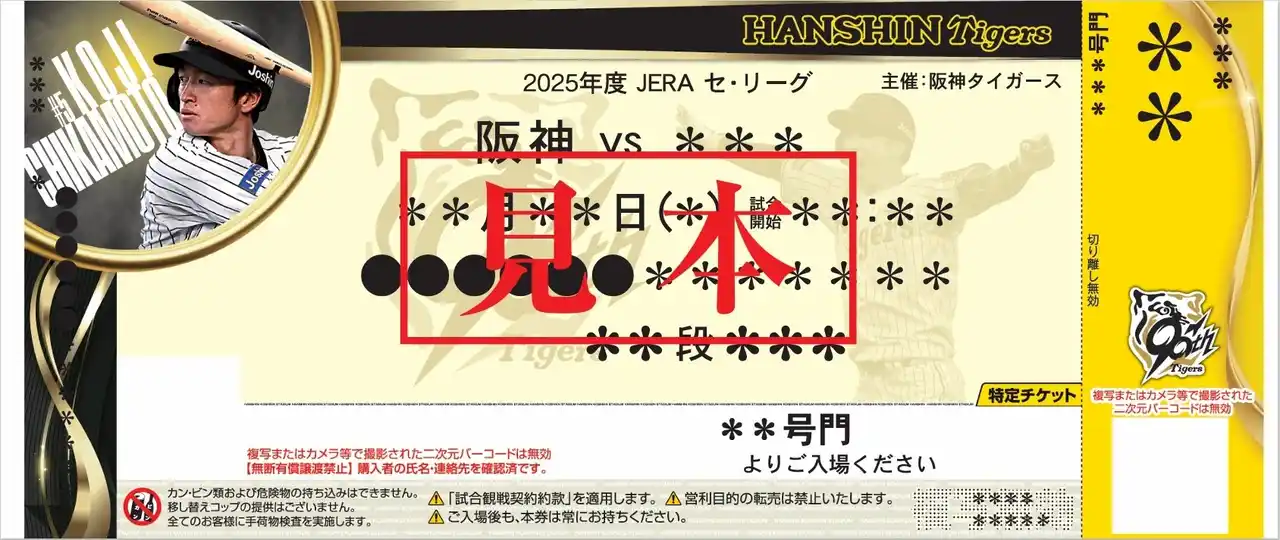 【選べる特典(先着順)】 1.《観戦チケットコース》:先着45名様 ・「TIGERS B-LUCK DYNAMITE SERIES」京セラドーム大阪での試合観戦チケット ※1名様あたり最大2枚まで/1試合のみ選択可能 ※複数試合分の申し込みは無効となり、最初のご注文のみ有効です |