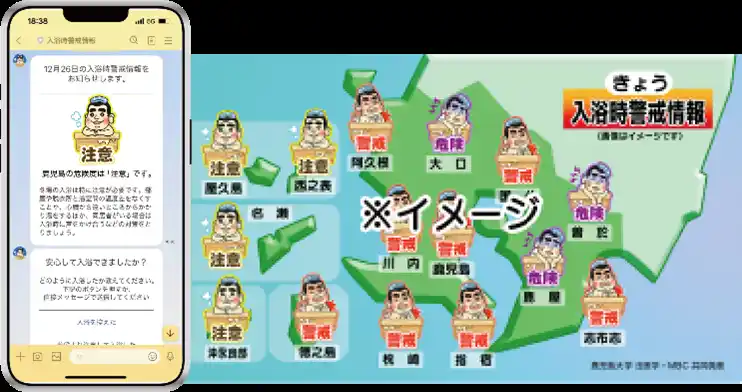 医療機関向けのソフトウェアを開発・販売する株式会社エクセル・クリエイツ(本社:大阪市、代表取締役:棚田誠)が鹿児島大学 林敬人教授と連携して行っている、「入浴時警戒情報」の2025年度の配信期間が、2026年2月末で終了しました。本サービスは、ヒートショックの危険度をLINEで、「注意」「警戒」「危険」の三段階で通知する無料サービスです。2023年度からサービスを開始し、毎年11月から翌年2月末まで、鹿児島県内で配信されています。 |
