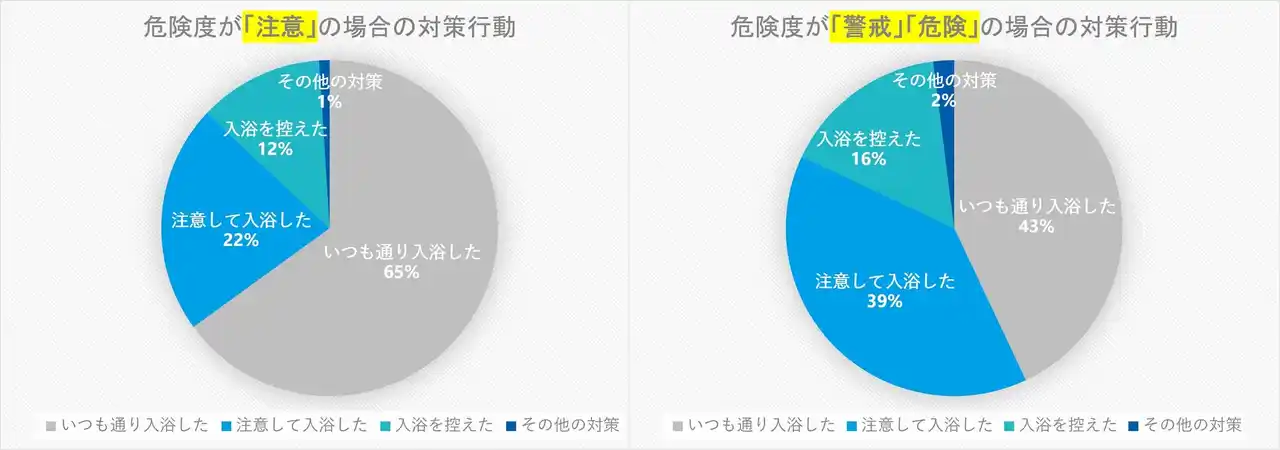危険度が低い「注意」の場合に「注意して入浴した」「入浴を控えた」等の対策を行ったと回答:35% |
