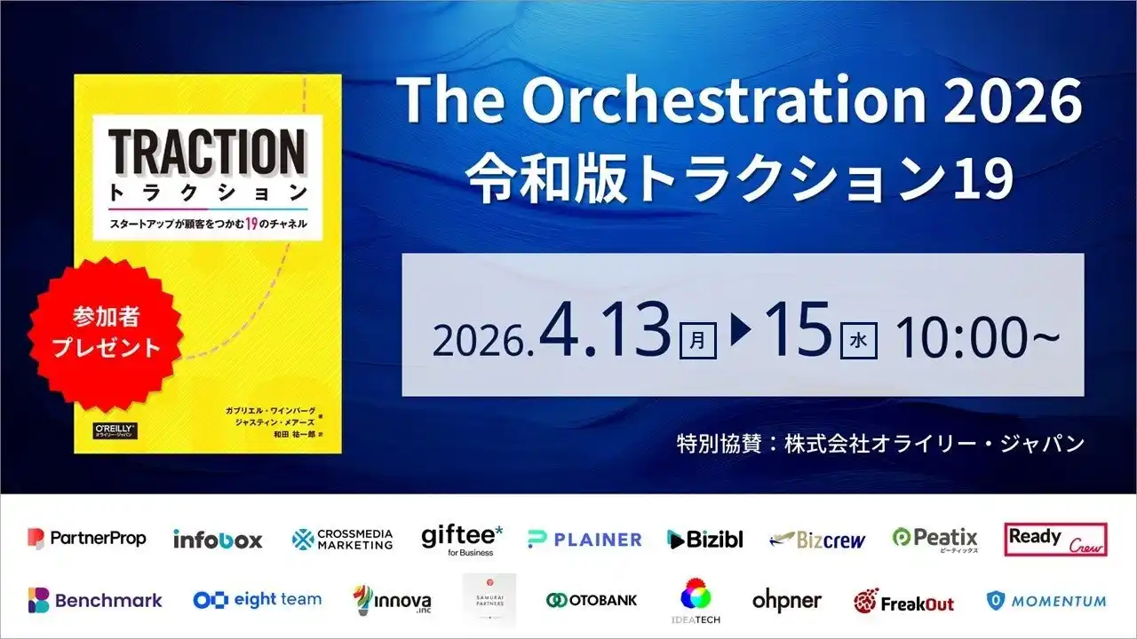 ウェビナーマーケティングツール「Bizibl(ビジブル)」を提供する株式会社Bizibl Technologies(本社:東京都千代田区、代表取締役:花谷 燿平、以下 Bizibl)は、BtoBマーケティングにおける「令和版・19のチャネル」と統合戦略をテーマとしたウェビナー「The Orchestration 2026 ~令和版トラクション19」を、2026年4月13日(月)から4月21日(火)までの期間、Bizibl上にて開催いたします。 |