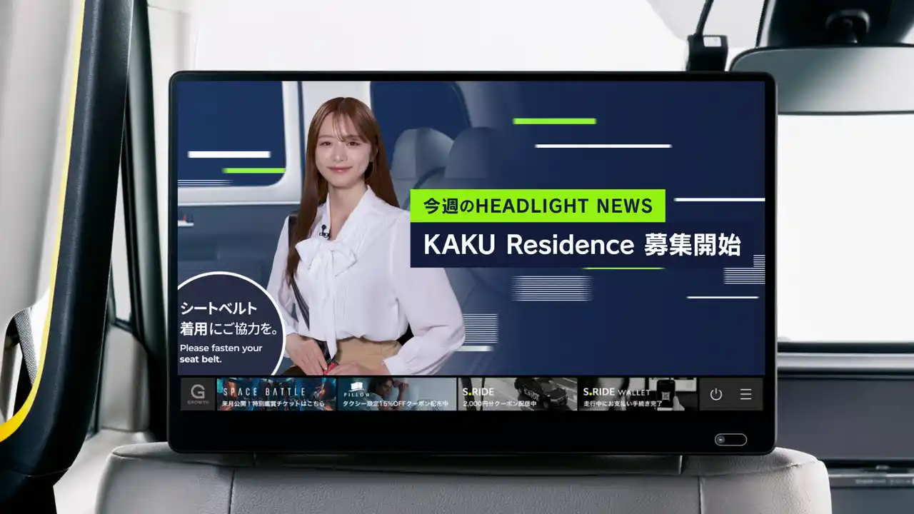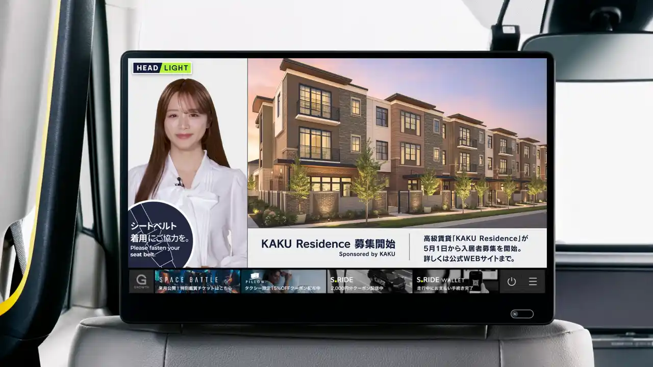 | 東京都内最大級のタクシーサイネージメディア「GROWTH」は、東京23区内で月間770万人のタクシーにおける移動時間にて、広告や情報コンテンツ、新たな体験をお届けしています。広告コンテンツ以外にも、「一歩先ゆく、インスピレーションを。」をコンセプトに掲げ、山下健二郎さん・森香澄さんがMCを務める移動時間の情報番組「HEADLIGHT」の放映や各メディアパートナーとのコンテンツ連携など、更なる移動空間の価値向上に努めています。 | |||||||||||