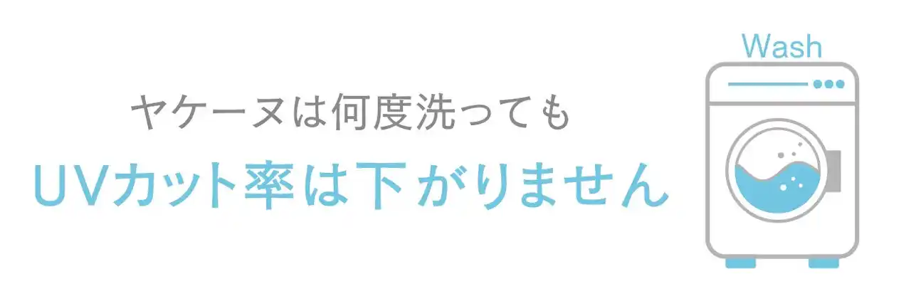 ヤケーヌは、安心・安全の日本製高機能糸を使用し、生地(糸)自体にUVカット効果のあるチタンを練り込んでいます。後加工ではありませんので、洗濯しても効果は半永久的に持続します。 |