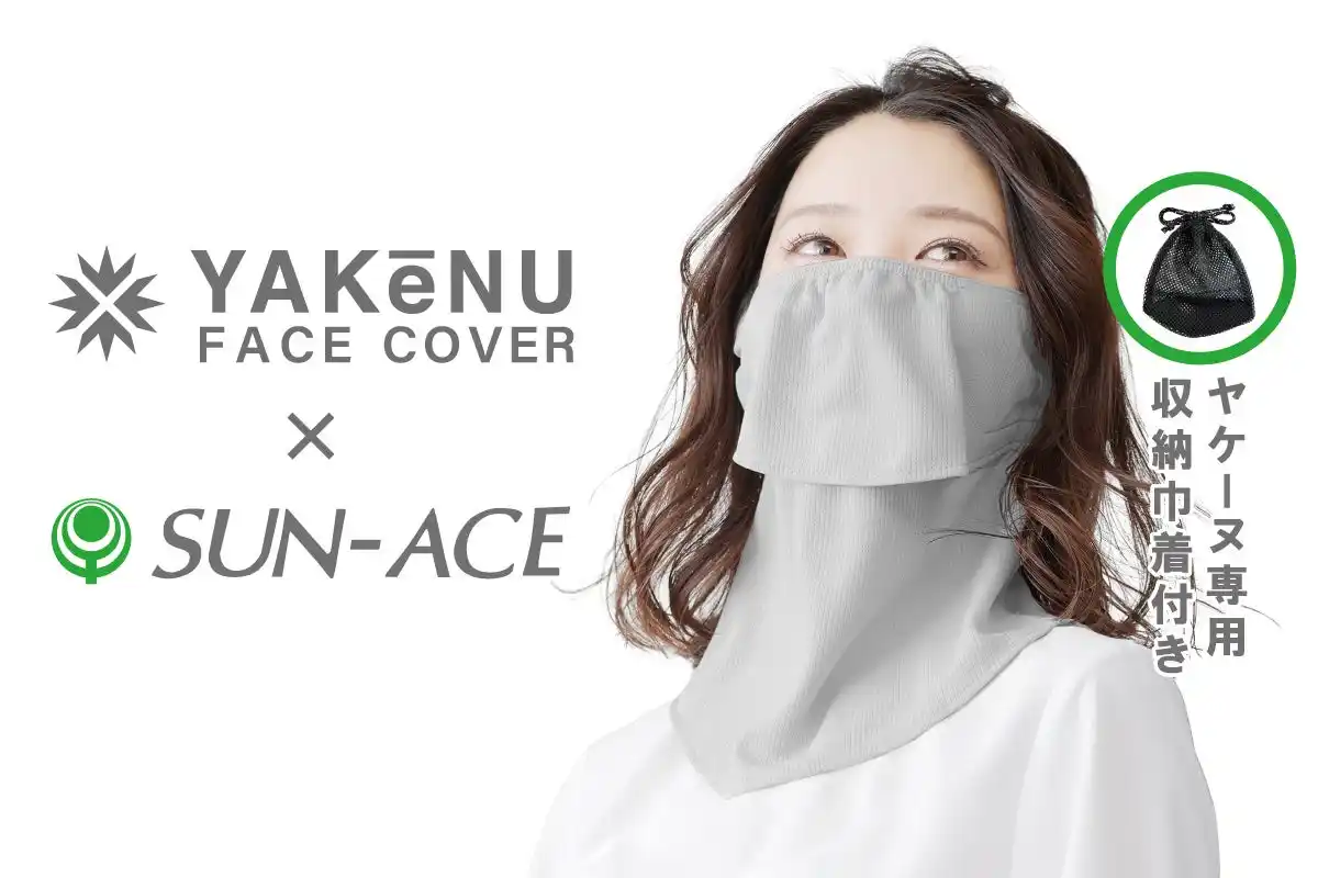 智之)は、累計販売数300万点を突破し、2025年楽天年間ランキング「スポーツ・アウトドア部門」で第2位※を受賞した日焼け対策専用フェイスカバーシリーズ「ヤケーヌ」を販売しています。同シリーズでは、夏の人気モデル「ヤケーヌ爽クール」をはじめ、入荷のたびに完売するなど高い支持を集めている、シリーズ最高のUVカット率を誇る「ヤケーヌ99.9ブラックレーベル」など、用途やシーンに応じたラインナップを展開しています。このたび、婦人服飾雑貨メーカー「サンエース株式会社」とのコラボレーションアイテム「ヤケーヌ(専用収納巾着付き)」を4月上旬より、全国の百貨店の伊勢丹、小田急、三越、そごう西武、ビブレ、阪急阪神(一部店舗を除く)にて順次販売を開始いたします。 |