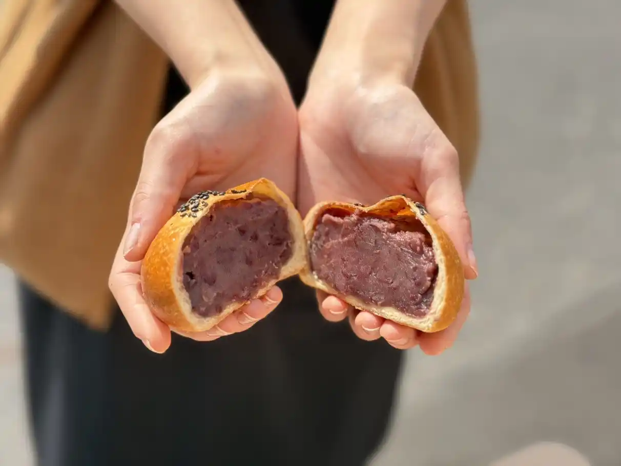 生地の薄さによって餡の存在感が際立ち、割った瞬間に広がる断面のインパクトも魅力のひとつ。「まるで和紙で餡を包んだような新食感のあんぱん」として、多くのお客様に親しまれている道の駅の名物パンです。