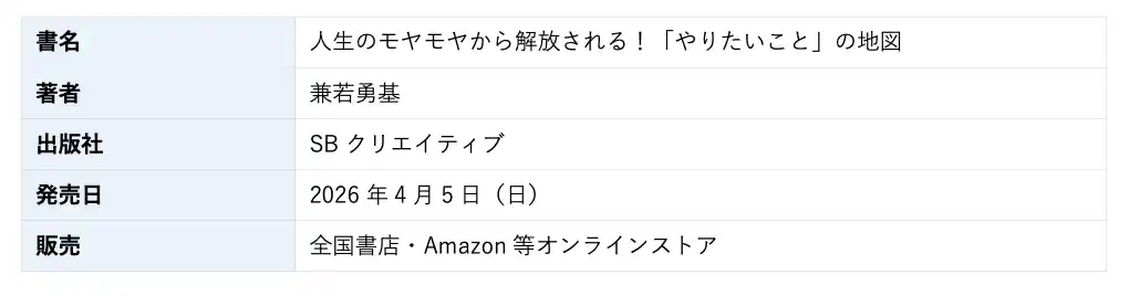 その問いに正面から向き合った書籍『人生のモヤモヤから解放される!「やりたいこと」の地図』(SBクリエイティブ刊)が2026年4月5日に全国発売されます。 |