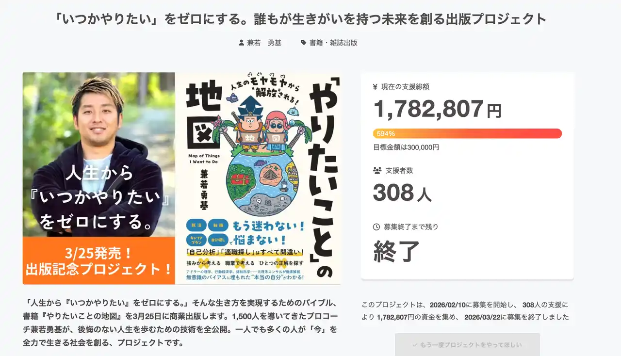 出版に先立つクラウドファンディングでは308名・約180万円の支援が集まりました。この数字は、単なる書籍への期待ではなく、「現状を変えたい」という人々の切実な声の反映です。 |