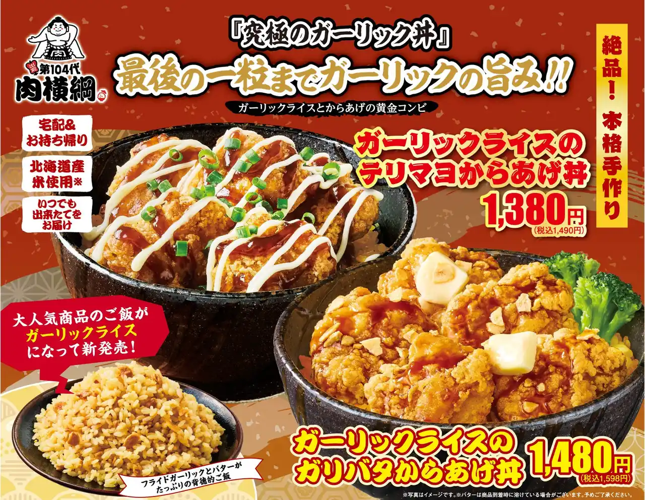 肉丼の宅配&お持ち帰り専門店、「第104代肉横綱」から、最後の一粒までガーリックの旨みを堪能できる新商品が登場いたします。 |