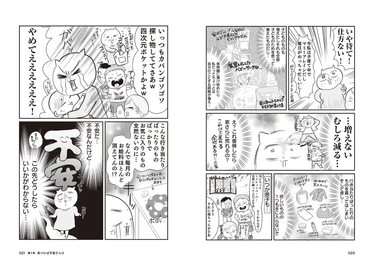 子供が生まれ、お金の不安を感じて相談したFPに「計算上、真船家は生涯で1億3千万円の負債を抱えます」と言われたことをきっかけに、マイホームの購入、お金の見直し、家の片付け、さらには料理や洋服選びまで、暮らしの中の困りごと1つ1つに向き合い、解決していった実体験を漫画化。 |