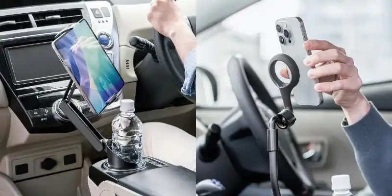 | ドリンクホルダーへ取付しながら、ドリンクホルダーを潰さない!MagSafe対応とタブレットホルダータイプから選んで購入できます! |