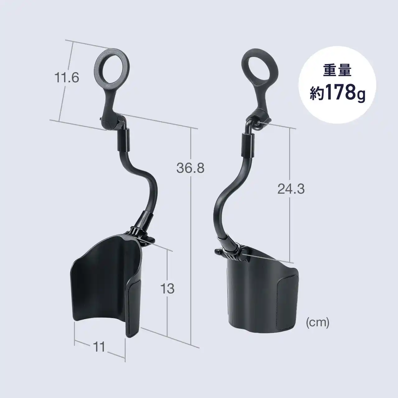 | 設置方法は、車のドリンクホルダーに差し込むだけ。工具不要で手軽に取り付けでき、届いたその日からすぐ使えます。固定部側面にはクッション素材を採用しており、ガタつきを抑えながら安定して設置可能。さらに、直径10cmまでのドリンクホルダーに対応し、さまざまな形状にフィットしやすいため、幅広い車種で使いやすい仕様です。 | |||||||||