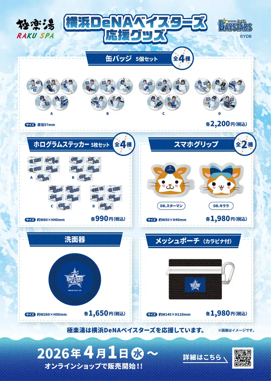 当社子会社の株式会社極楽湯(本社:東京都千代田区、代表取締役社長:佐藤 剛史)および株式会社GK Marketing(本社:東京都千代田区、代表取締役社長:山本 真司)は、2026年4月1日(水)~12月31日(木)までの期間、神奈川県に所在する極楽湯・RAKU SPA3店舗で『横浜DeNAベイスターズ』応援キャンペーン“ととのえDeNAベイスターズ”を開催いたします。 |