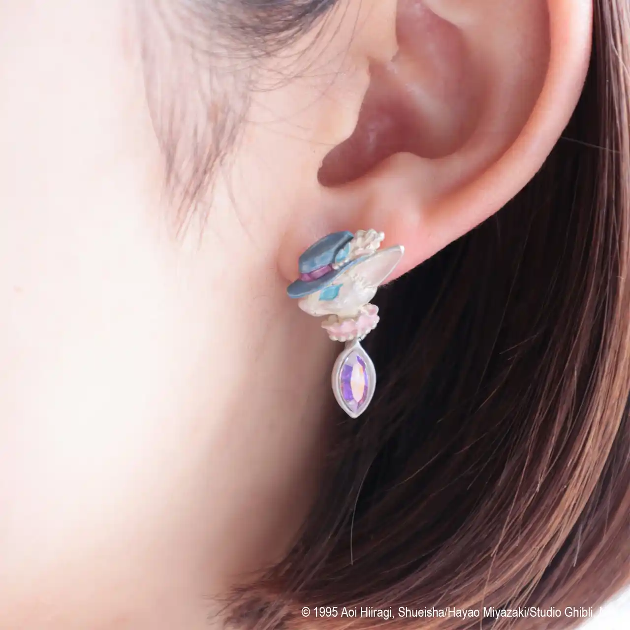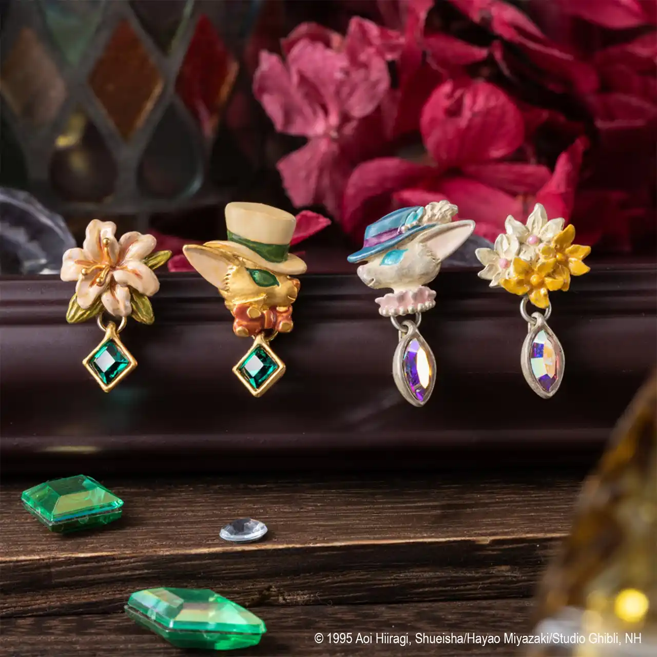 バロンの毛並みのカラーに合わせた落ち着いたゴールドのピアス「Donguri Closet 耳をすませば ピアス 再会 バロン」には、バロンの瞳に合わせて奥行きのあるグリーンのラインストーンを、「Donguri Closet 耳をすませば ピアス 再会 ルイーゼ」には、シルバーを基調にオーロラのようなカラーのラインストーンをあしらい、それぞれのイメージに合わせたお花のピアスとのセットアイテムです。二つのピアスを組み合わせて使用すると、作中では叶わなかった二人の再会を表現するかのようにバロンとルイーゼが向かい合うデザインになっています。また、お花のピアスは単体でも楽しめるよう華やかに仕上げました。 |