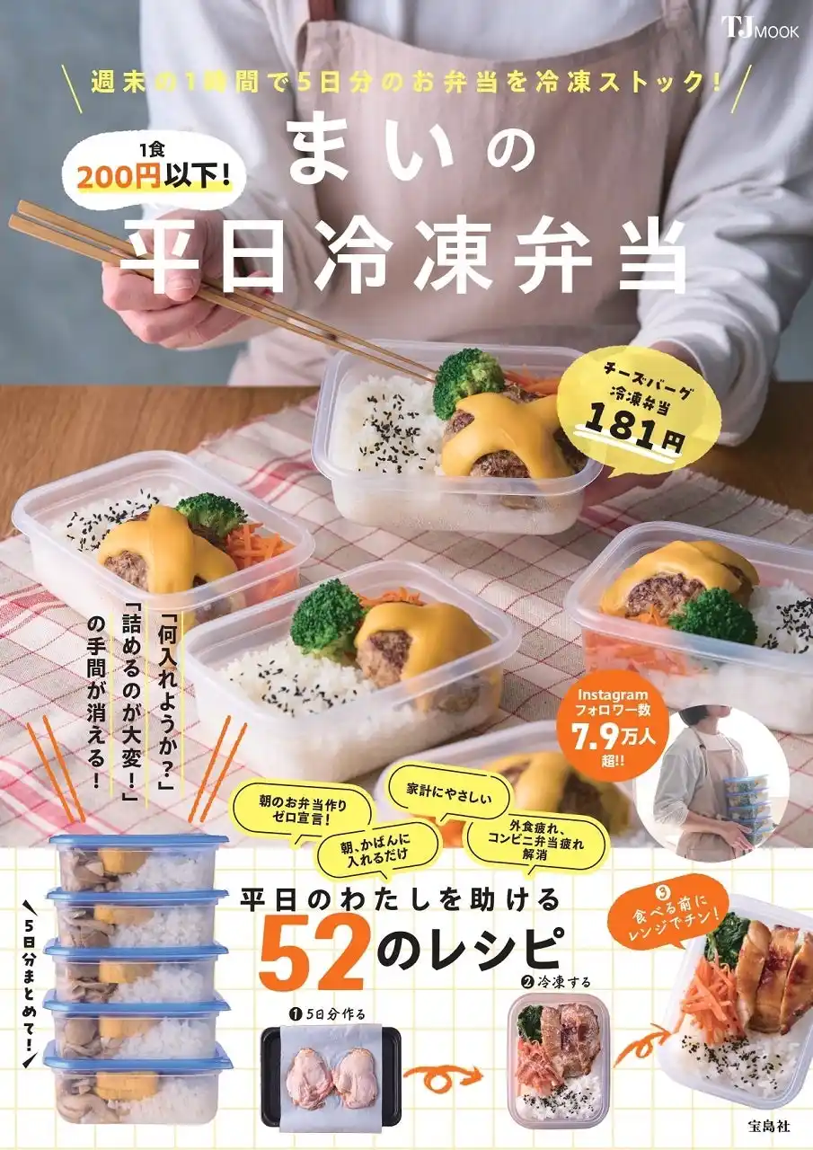 Instagramフォロワー数7.9万人超え!料理系インフルエンサー・まいさん初のレシピ本『1食200円以下! まいの平日冷凍弁当』を、2026年3月26日に発売します。 |