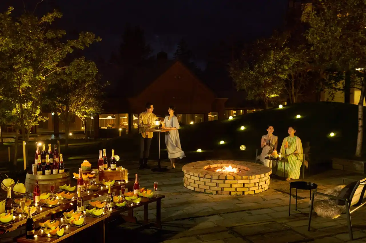 「北海道の大地を感じるグレイスフルステイ」がコンセプトの「リゾナーレトマム」は、2026年6月1日~8月31日の期間に、ファーム星野(*1)の乳製品を使用した「赤肉メロンの贅沢かき氷」を今年も提供します。毎年好評のメロンかき氷は、夏に旬を迎える赤肉メロンを丸ごと1玉使用した、贅沢な一品です。また今夏は、青肉と赤肉、それぞれのメロンの味わいを楽しめる2種類のオリジナルドリンクを新たに提供。焚き火が揺らぐ屋外ラウンジで、メロンの豊かな甘みと香りを余すことなく堪能しながら、北海道の涼やかな夏の夜を優雅に過ごせます。