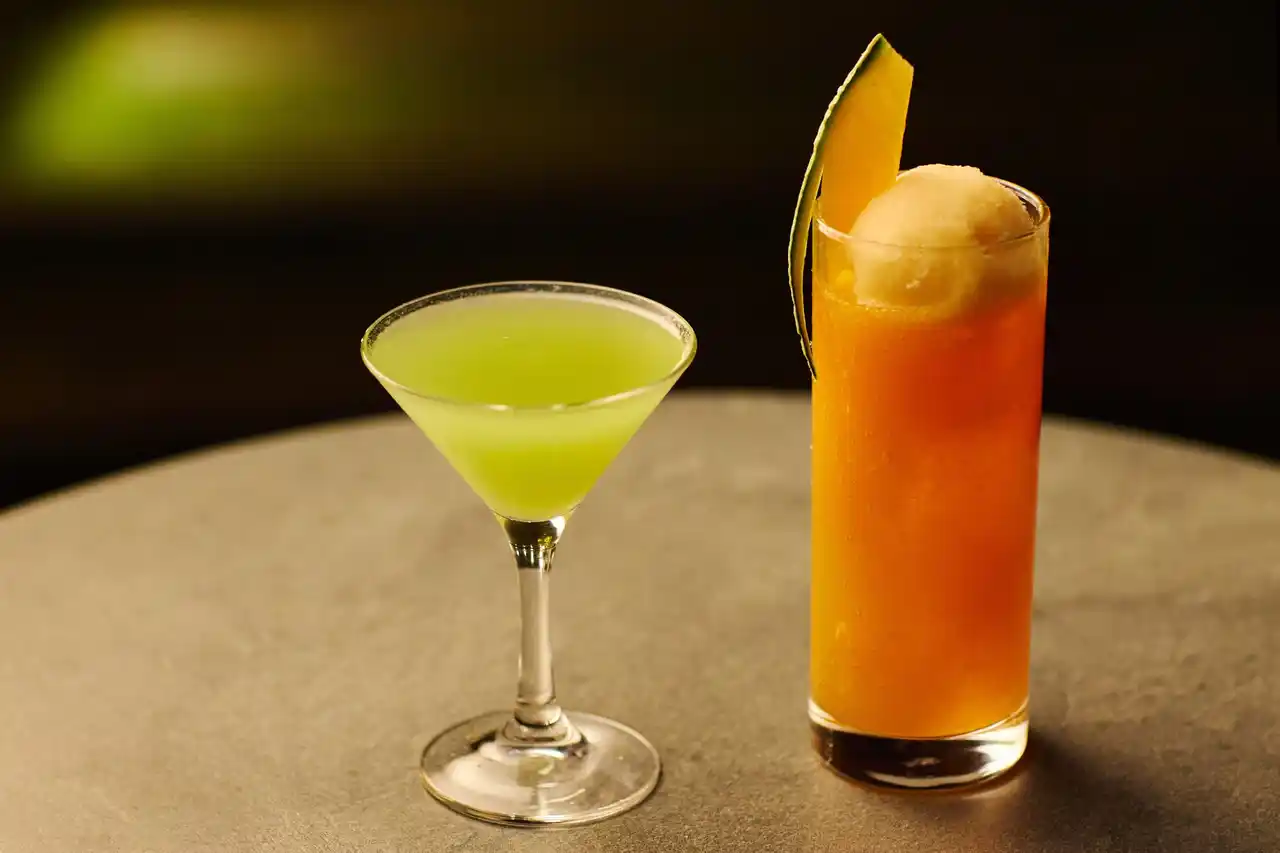 | 今夏は、青肉と赤肉、それぞれのメロンの味わいを楽しめる、2種類のドリンクを新たに提供します。「青肉メロンカクテル」は、清涼感のある甘みをもつ青肉メロンを使用。ジンにハーブを合わせた、すっきりとした味わいが口の中に広がります。キレのある後味が夏の夕暮れ時にぴったりのカクテルです。「赤肉メロンソーダ」は、コクのある甘みが特徴の赤肉メロンを使用。果肉をそのまま味わうような濃厚な一杯に、トマム牛乳(*3)を使ったメロンアイスを浮かべて仕上げます。子供から大人まで楽しめるフロートです。 | |||