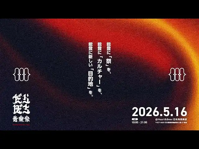 音楽の力で能登半島に新たな“引力”を生み出す音楽祭「だらぼち音楽祭」が、2026年5月16日(土)、石川県鳳珠郡能登町・Heart & Beer 日本海倶楽部にて開催されます。 |