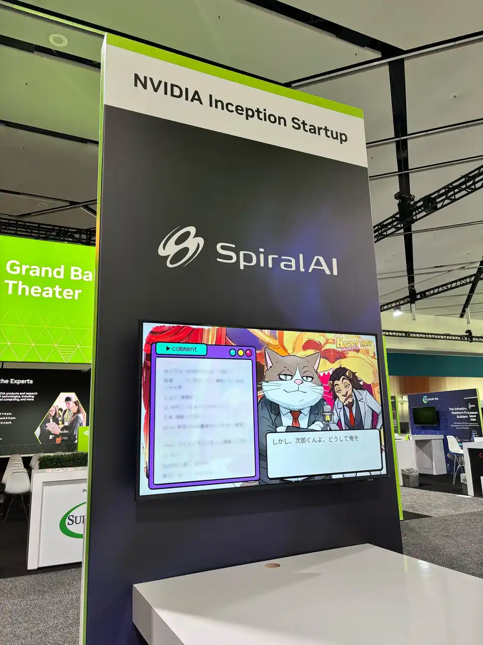 SpiralAI株式会社(代表取締役:佐々木雄一、所在地:東京都千代田区)は、2026年3月16日から19日にカリフォルニア州サンノゼで開催された、NVIDIA主催の世界最大級のAIカンファレンス「GTC 2026」において、「Startup Pavilion」に日本のInception Partnerとして唯一選出されました。本イベントにて、当社が開発した感情特化型大規模言語モデル(LLM)「Geppetto2」が描く「人の心に寄り添うAI」という考えを、世界に向けて発信いたしました。 |