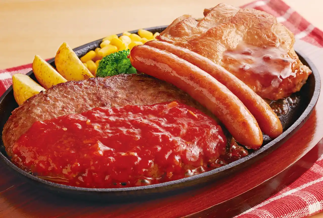 (1)どど~ん!っと大きなミックスグリル/1,099円(税込1,208円) |