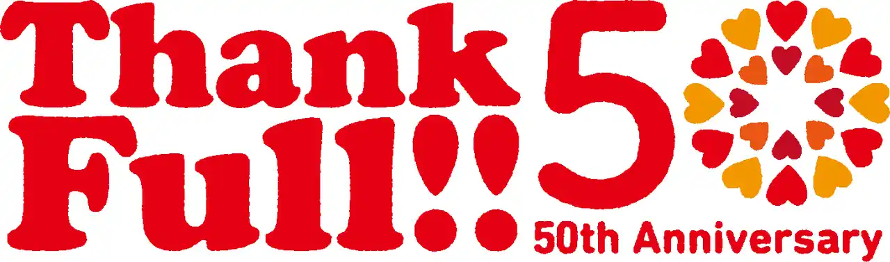 Thank Full!! ありがとうがいっぱいの50周年の始まりです。創業50年を迎えるジョイフルにどうぞご期待ください。 |