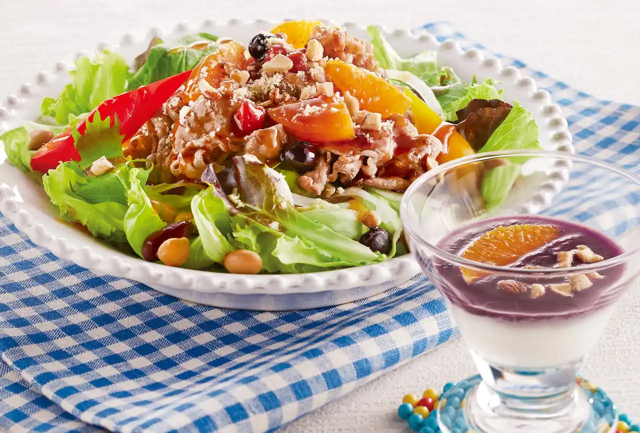 「カラダはぐくむ!薄切りビーフとミックスビーンズのパワーサラダ&アサイーヨーグルト」