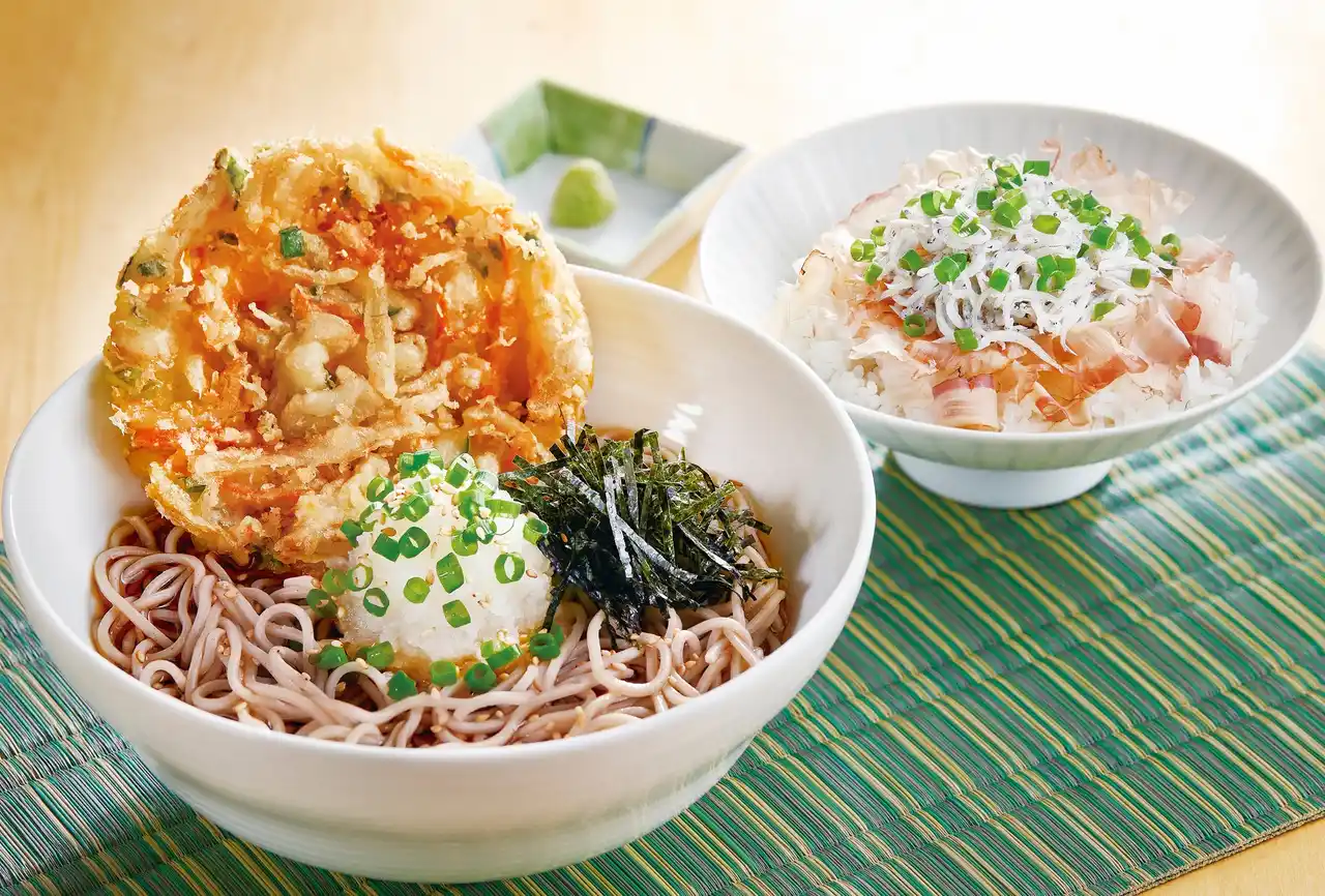 野菜かき揚げのぶっかけおろしそばと釜揚げしらす丼/969円(税込1,065円) |