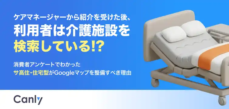 Google ビジネスプロフィール(TM)︎・HP・各SNSの一括管理サービス「カンリー店舗集客」の開発・提供を行う株式会社カンリー(所在地:東京都品川区、代表取締役:辰巳 衛,秋山 祐太朗)は、介護業界向けに「ケアマネージャーから紹介を受けた後、利用者は介護施設を検索している!?消費者アンケートでわかったサ高住・住宅型がGoogleマップを整備すべき理由」を無料公開しましたので、ご案内いたします。