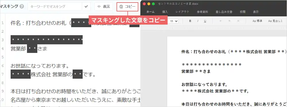 4. マスキングした文章をワンクリックでコピー可能 |