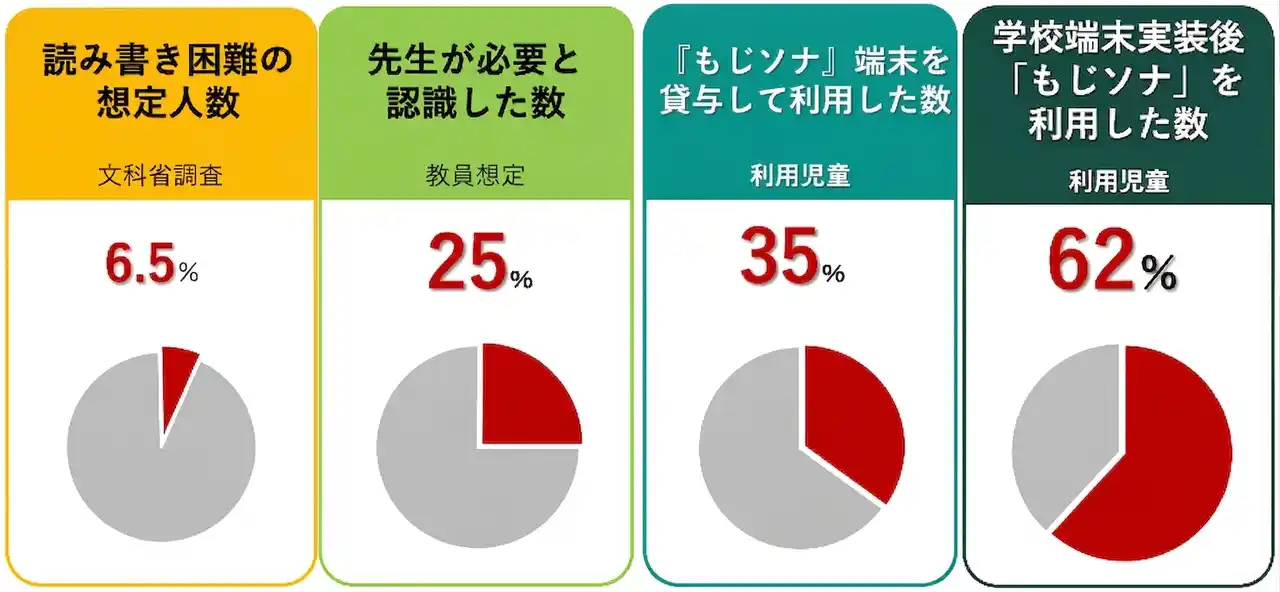 その他にも、読み書きへの一時的な苦手意識や学習への意欲低下を抱える児童生徒が存在します。また、視覚よりも聴覚で認識する能力が高い「聴覚優位」の子どもたちにも適しており、もじソナは、「特別支援ツール」ではなく「学びのインフラ」として多様なニーズに応えます。 |