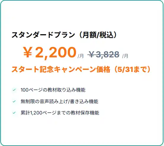 ・ 自然な読み上げ:教材内の任意箇所をタップするだけで自然な音声で読み上げ。縦書き・横書き両対応、英語はネイティブ発音で読み上げます。 |