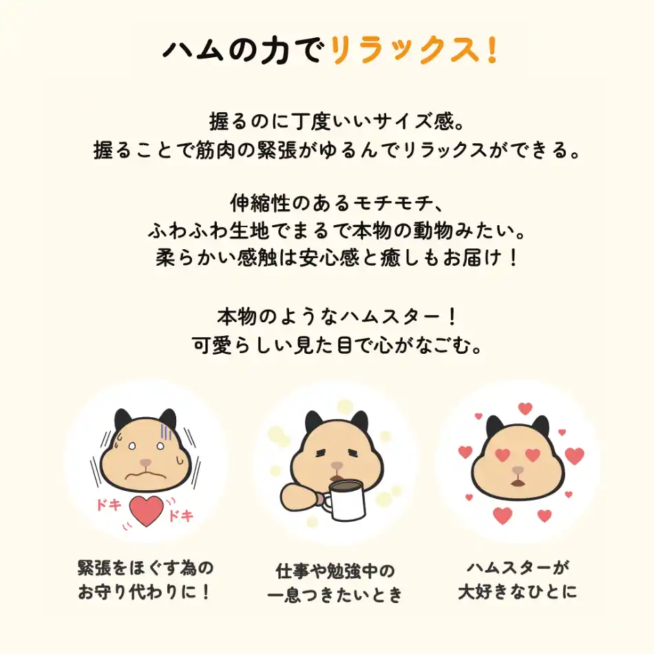 | 握って癒される虚無顔ハムスターのマスコット。 | |||||||||