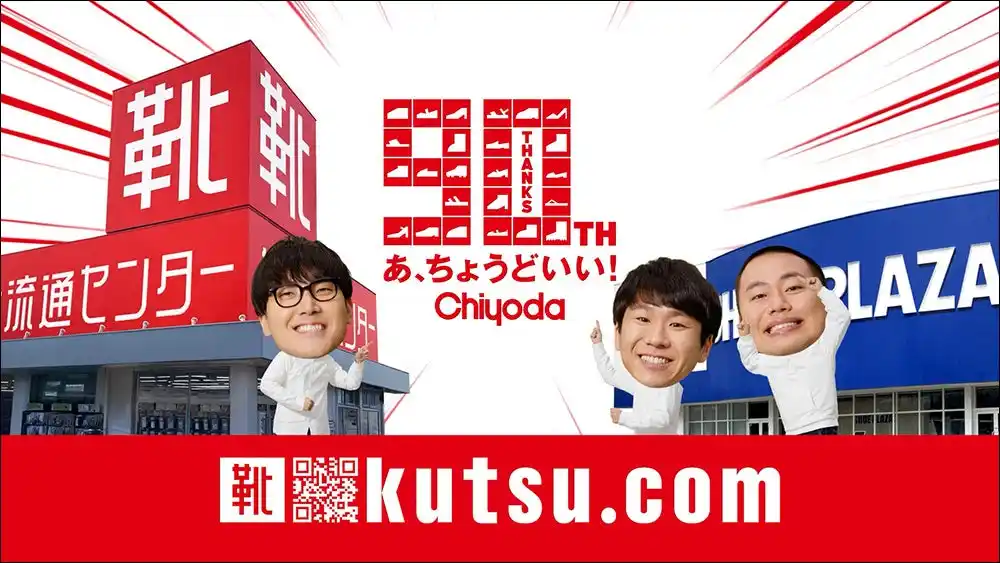 1936年(昭和11年)東京・高円寺の「チヨダ靴店」から歩みを始めた当社は創業90周年を迎えました。お客様の日頃のご愛顧に感謝して、創業90周年大感謝祭・第一弾を3月26日(木)~4月8日(水)に開催いたします。新TVCM「創業90周年大感謝祭」篇では、ハナコの3人がコミカルな3頭身の姿で登場!大感謝祭の開催をお祝いムードたっぷりで紹介、最大半額のスペシャルプライスに驚いた3人は大急ぎで店舗へ向かいます。 |