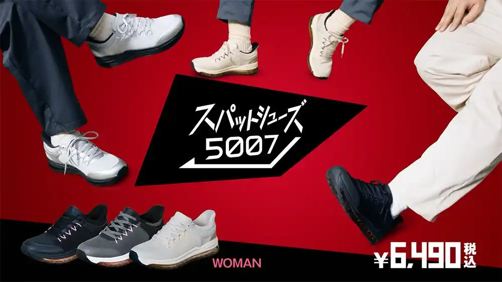 スパットシューズはメンズ・レディース・ジュニア向けにスニーカーやカジュアルシューズ、ビジネスシューズなど幅広いラインナップを展開しております。またセーフティーシューズ(軽作業靴)や、厨房シューズなどの業務用をはじめ、ご高齢者やお身体の不自由な方に向けたサポートシューズなど、お客様のニーズに合わせて、さまざまなタイプのスパットシューズを展開しております。 |